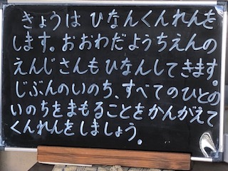 今日は避難訓練をします。大和田幼稚園の園児のみなさんも大和田小学校に避難してきます。
