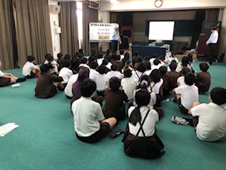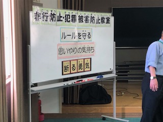 今日は非行防止教室です。5年生が警察関係者からお話を聞きました。