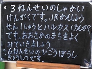 3年生が社会見学に行きます。環状線を一周して、あべのハルカスから大阪の町を見ます。