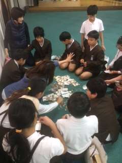 今日の放課後、運営委員が集まりユニセフ募金活動の集計をしました。