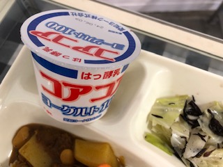 今日の給食 カレーライス、ヨーグルト