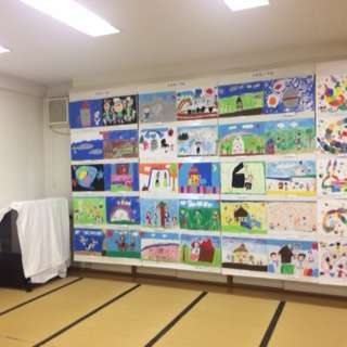 コミュニティ会館では、大和田小学校一年生の絵画をはじめ、大和田幼稚園、光の園幼稚園、福小学校、淀中学校の子どもたちの作品が展示されています。