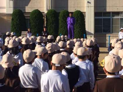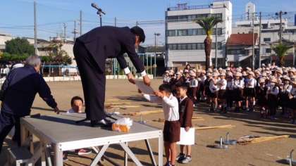 最初に校長先生から、七五三の話、大阪市イングリッシュデイの話、大野レジオン祭の話がありました。