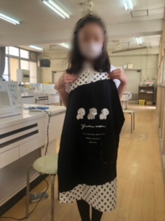 ミシンを使ってエプロンを縫っていきます。今日はしつけの段階です。