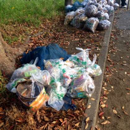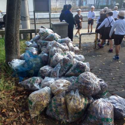 こんなにたくさんゴミや落ち葉を拾いました。