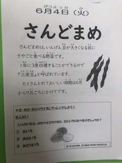 今日の給食は、さんどまめがでました