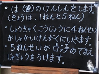 ○歯科健診の1回目です。今日は1年生と5年生です。
