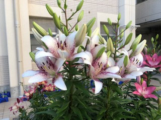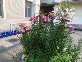 中庭のプランターの百合(ゆり)がきれいに咲きました