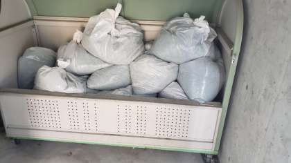 きれいになった芝生が式典をお祝いしていきますね。これだけの雑草などがあったことが袋の大きさと数でわかりますね。
