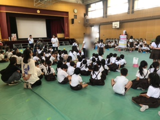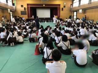 今日は創立記念行事のお祝い集会のリハーサルをしました。講堂に全校児童でいっぱいになりました。