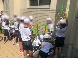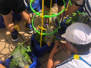あさがおが成長(生長)してきました。支柱を立てていきます。