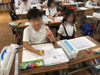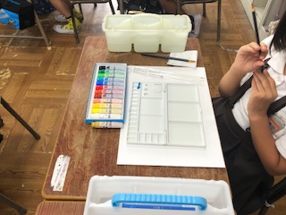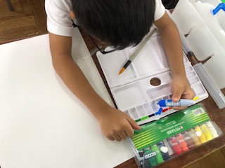 真っ白な(地の色)バレットに初めて絵の具が置かれていきます。