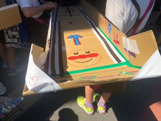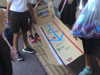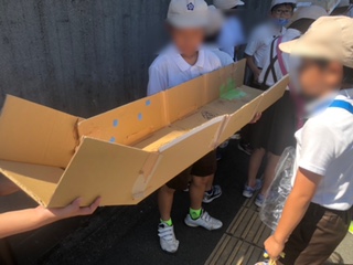 ゲームで使うスロープを、4年生がグループで工夫して作りました
