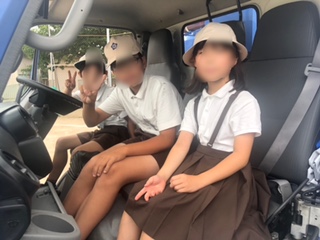 バッカー車のいろいろところを見たり、運転席に入ったりしました