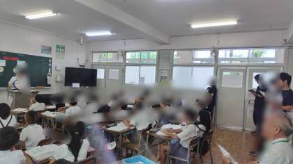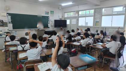 2年生の教室で校内への公開授業を行いました。担任以外の教員が授業を進めています。