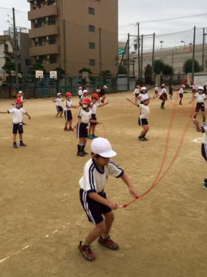 昨日に続いて、15分休憩を利用して、なわとび週間(1年生〜3年生)を行いました。