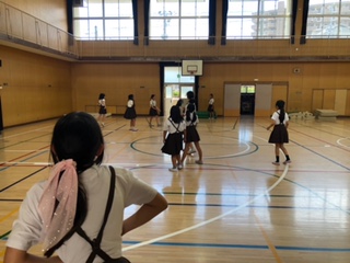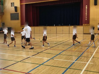 講堂でみんなで遊んでいますね