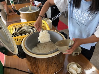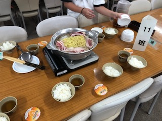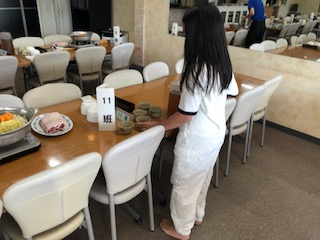 食事係が夕食の準備をしています
