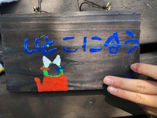 思い思いに絵や字をかいた焼き板を見せてもらいました