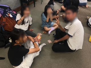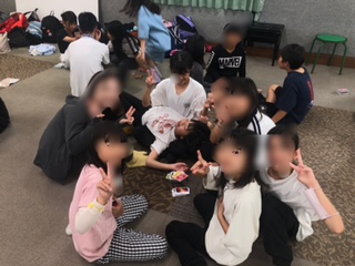 3日目 多目的ホールでの自由時間 先生もいっしょ