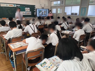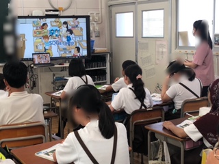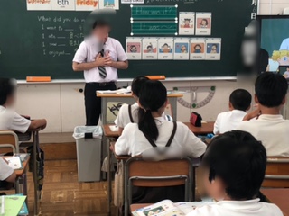 5年生、6年生の外国語(英語)授業は、他校の教員(写真中)、ネイティブの講師(写真下)が行っています。