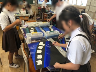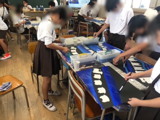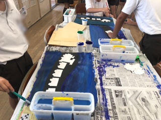 銀河鉄道の夜をイメージしての絵です。今日は夜のところを描いています。