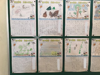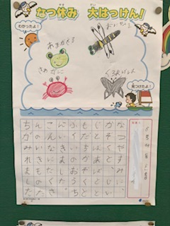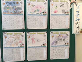 夏休みの宿題、夏休みに発見したことの作品が掲示されています