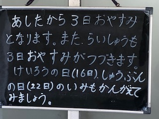 それぞれ、敬老の日、秋分の日があります。この祝日のことも調べていきたいですね。