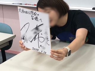 端末で写して、各クラスで見ています。先週の5年生の夢授業でのアスリートからいただいた色紙を紹介しました。