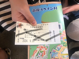 小学校団体限定のスクールメニューチケットと地図が一人一人に配られます。(チケットの写真は加工しています)