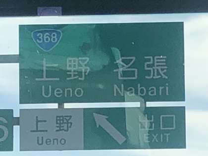 15時28分に伊賀上野を通っています(出口は表示板です。バスはそのまま走行を続けています)