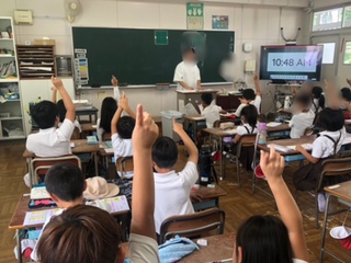 新しい漢字の学習です。書き順を手を使って学んでいます。
