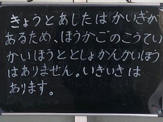 今日、明日は教職員の会議があるため、放課後の校庭開放、図書館開放はありません。