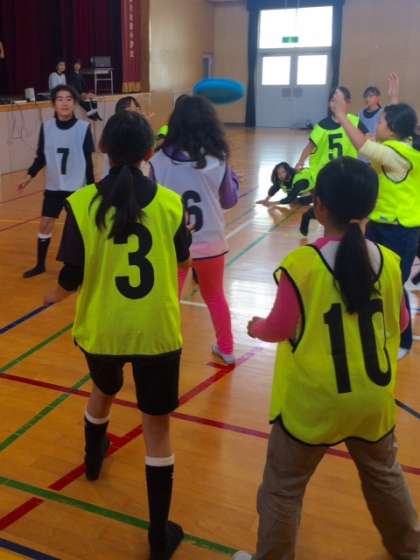 親子ドッジビー対戦に続いて、ゴールゲームをします。