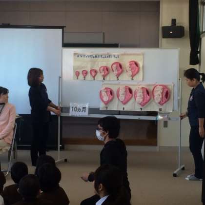 3人の妊婦さんが講師として、体験をして交えながら、いのちの誕生から出産するまでのお話を学びました。
