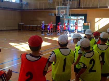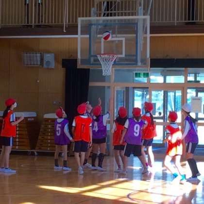 5年1組で、体育の公開授業を行いました。バスケットボールを課題解決型学習を行っています。