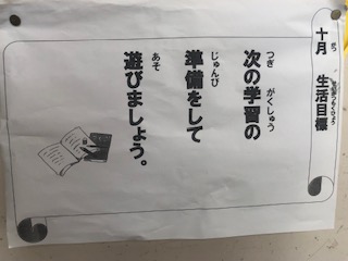 10月の生活目標は、次の学習の準備をして遊びましょう、です。