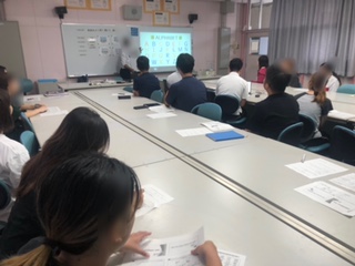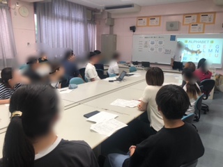 放課後に教員が外国語(英語)の研修を受けました。子どもたちへの指導について、具体的に学びました。