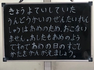 今日は朝から雨です。運動会の全体練習は延期となりました。
