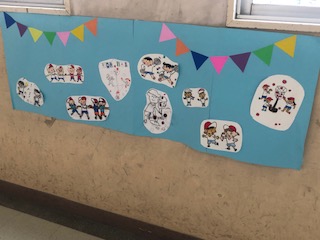 廊下に運動会の掲示がありました。あと2週間ですね。(写真は3年生)