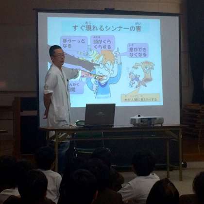 薬物乱用、シンナー吸引などの害や、身体に現れる症状を、パワーポイントで科学的に教えてもらいました。