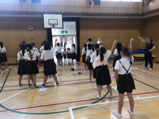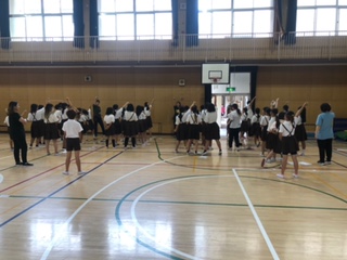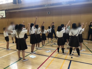 昼休みに応援団が練習しています