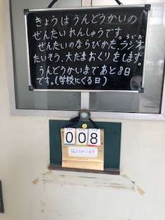 校長室前に「運動会までカウンター」を置きました。子どもたちが学校に来る日数です。(土日祝、運動会当日は入れていません)