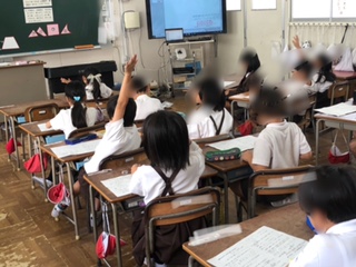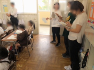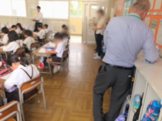 校内の教員や教育センターの指導担当(写真上)が授業をみました。終わってから指導担当が授業をした教員に指導講評しました。