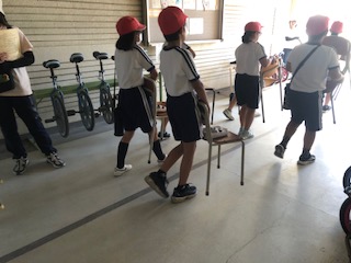 今日はいすを持って運動場へでます