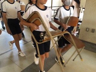 運動会の全体練習 いす