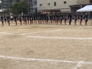 団体演技の練習 6年生