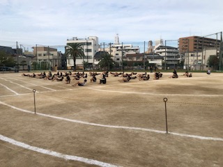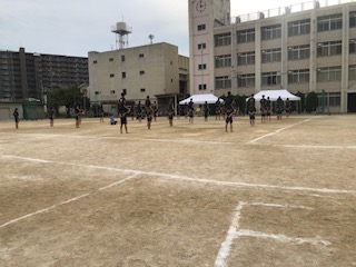 最後の運動会です。最高学年の演技となるようにがんばっています。写真下は、列の横から撮影しています。当日は前や後ろから見ると素晴らしい演技をご覧いただけます。