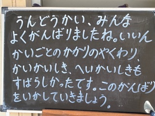運動会では子どもたちは持てる力を発揮していました。係の役割もしっかりと果たしていました。この成果を生かしてがんばって学校生活をおくってほしいと願っています。