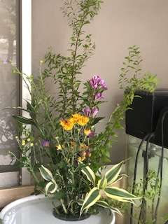運動会の朝、校長室前に生け花が飾られてありました。生涯学習の皆様、いつもありがとうございます。